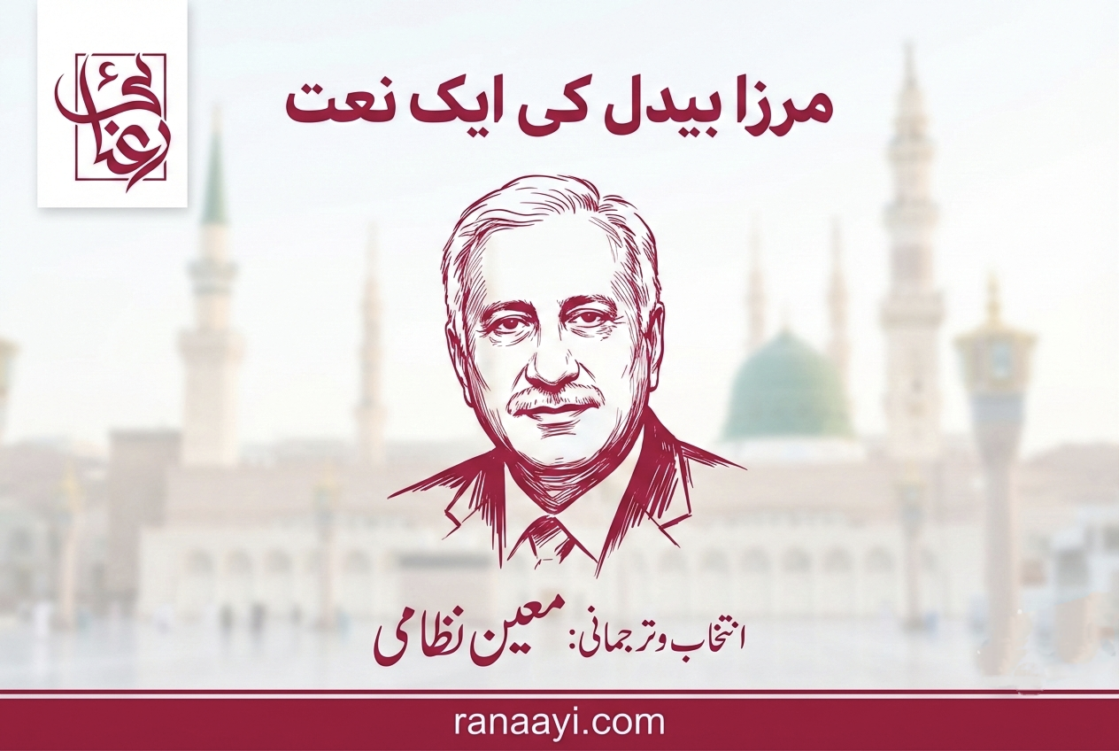 مثنوی کی صنف میں مرزا عبدالقادر بیدل جیسے عبقری قادری قلندر کی ایک مختصر نعت اور اس کی ترجمانی ملاحظہ فرمائیے: